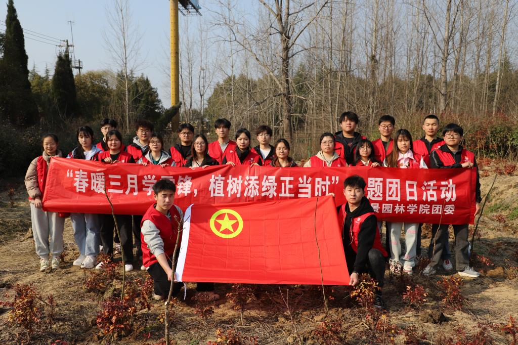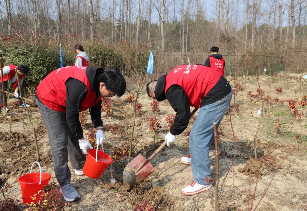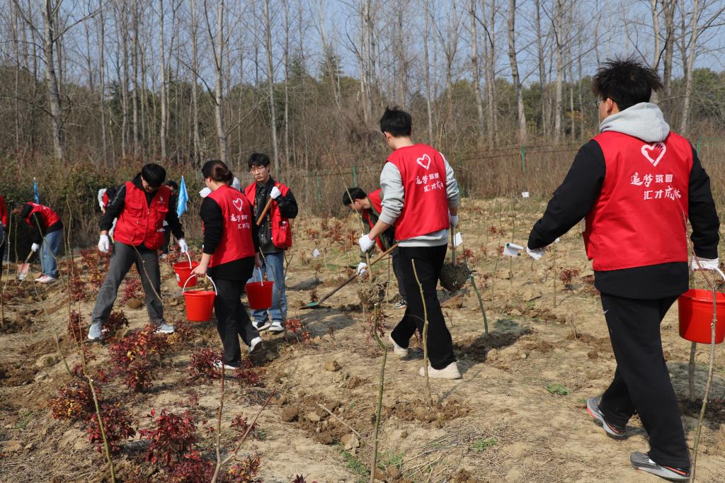 团委主办、“金种子”辅导员工作室承办的“春暖三月学雷锋,植树添绿正当时”主题植树节活动成功开展。30名师生志愿者在句容市陈武镇的彩叶苗木基地栽下不同品种的苗木,以“志愿红”引领“生态绿”,用实际行动传承雷锋精神,为城市再添一片“新绿”。