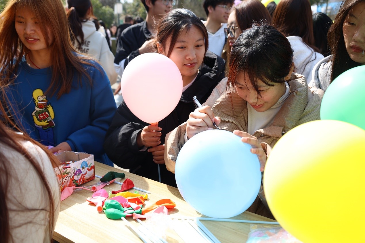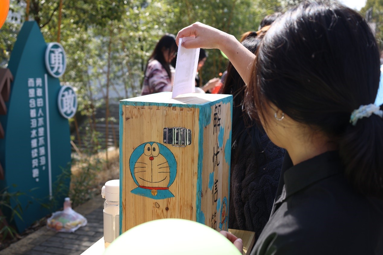活动现场设立了五个体验区,在“烦恼信箱”体验区,同学将烦恼写在纸上投放到解忧信箱中,89人期待着专属回复;在“压力粉碎机”体验区,256名学生将信纸撕碎,让烦恼在顷刻间烟消云散;在“减压手作”体验区,同学们在工作人员指导下制作蜡烛红梅手作,安静修心,养育自己的心灵之花;在“护心使者”体验区,228名学生制作了精美明信片,将美好祝愿传递给身边的同学;在“击破高压”体验区,400余名学生吹起代表压力的气球,在气球上写上自己的烦恼,并将“烦恼”逐个击破。大家在一笑一闹中缓解压力与焦虑;在一动一静中认识自己;在交流中增进理解,在实践中找寻内心的活力与力量。