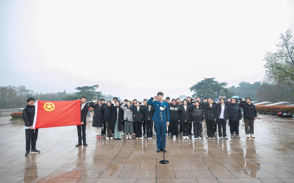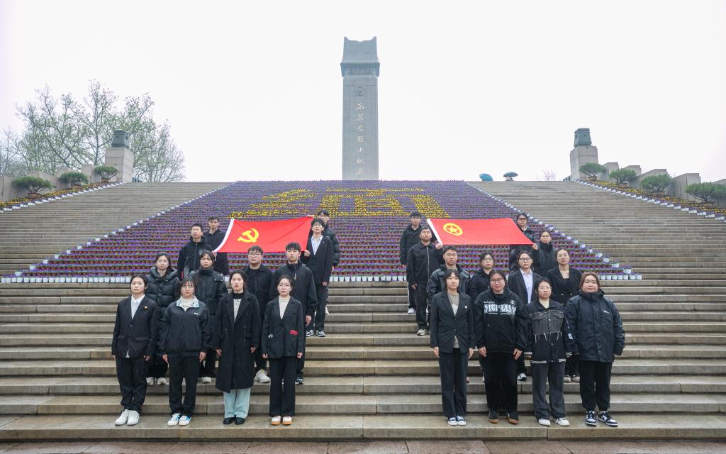 在烈士纪念碑处,同学们怀揣着无上敬意,正衣襟,持菊花,一步步踏上石阶,在高大肃穆的雨花台烈士纪念碑前低头默哀。默哀毕,同学们向革命先烈敬献鲜花并环绕革命烈士纪念碑慢步瞻仰一周,向为了实现民族独立、人民解放和国家富强建立了不朽功勋的革命先辈们致敬。面对团旗,全体学生列队整齐,重温入团誓词:“我志愿加入中国共青团……”心潮激荡,誓言铿锵。跨过纪念桥,同学们来到雨花台烈士纪念馆参访学习。一份份详实的文字资料,一幅幅珍贵的历史照片,记录了雨花烈士不畏牺牲、英勇抗争的奋斗故事。同学们驻足观看,追忆英烈事迹、肃然起敬、荡气回肠、备受鼓舞,一致表示将从革命先烈的不屈奋斗中继承坚强意志,从革命先烈的光荣事迹中汲取奋进力量。