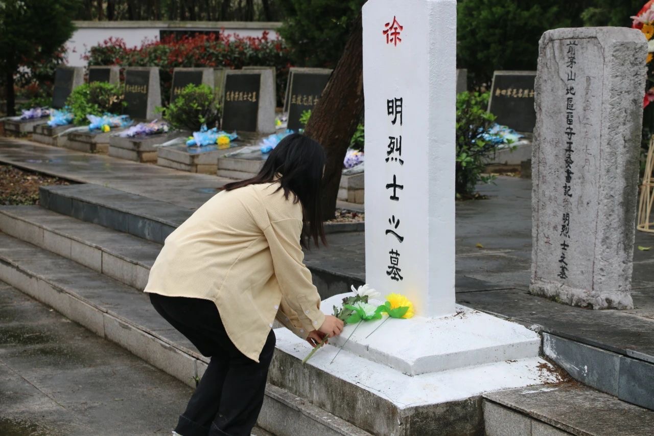 4月3日,茅山校区学生党支部组织党员和学生来到徐明烈士墓前聆听英雄事迹,敬献鲜花,缅怀先烈。