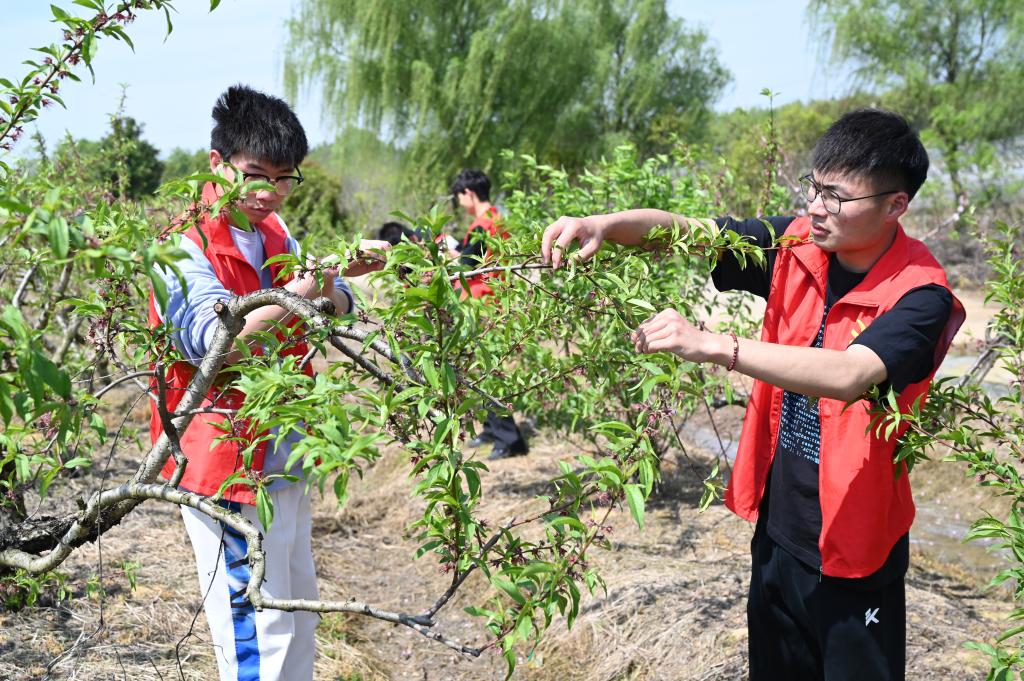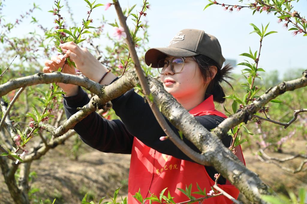 、江苏省作物学会组织学生来到天王镇果牧不忘家庭农场开展“劳动教育提技能,田间助农促振兴”实践活动,帮助果农进行桃树疏花,提高果树质量和产量,助力乡村振兴。