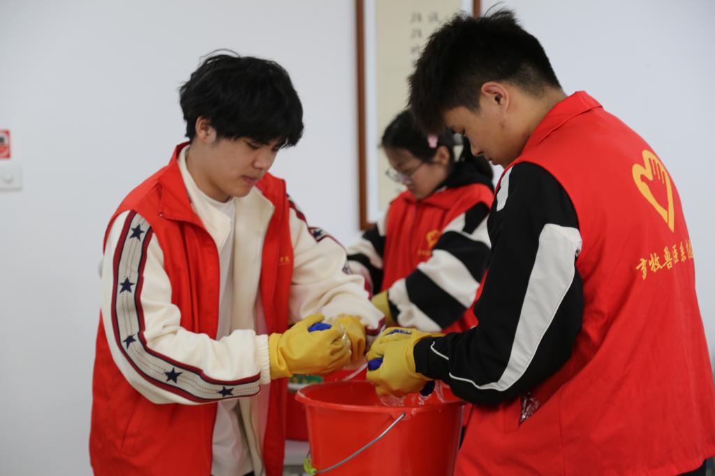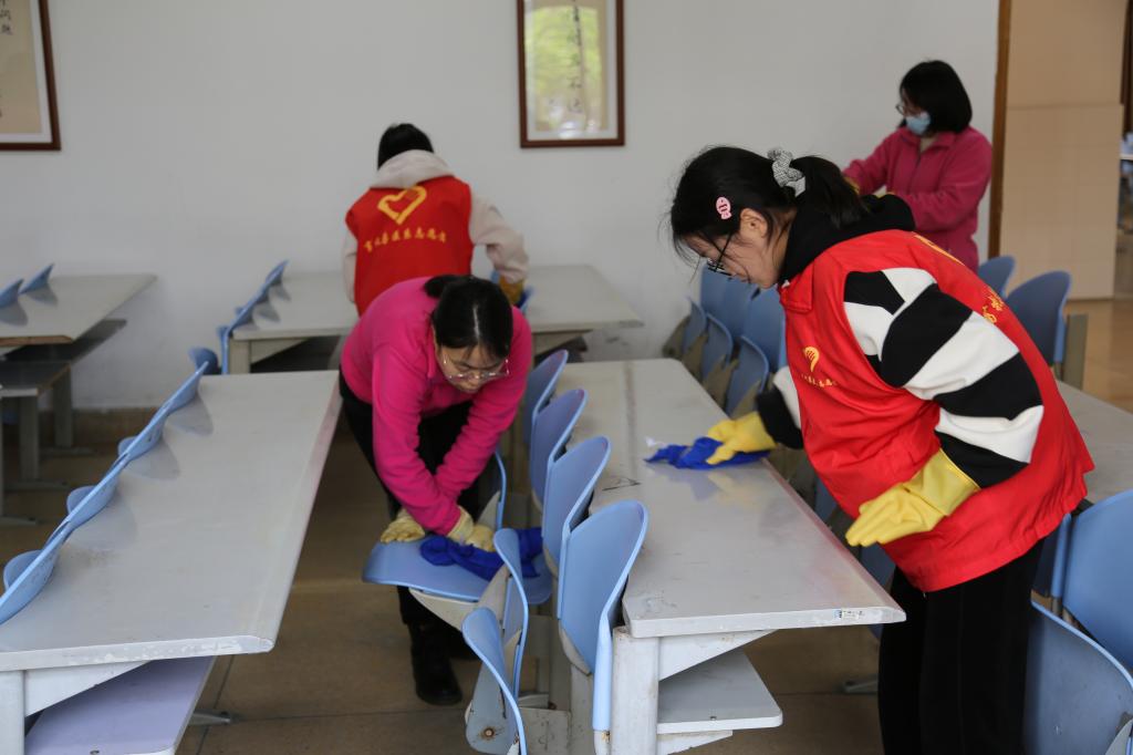根据提前分配好的教室区域,在物业管理员的带领下同学们认真有序地清洗课桌面,经过同学们一下午的努力,教室环境焕然一新,同学们用实际行动为全院师生营造了一个干净、整洁、美观的教学和学习环境。