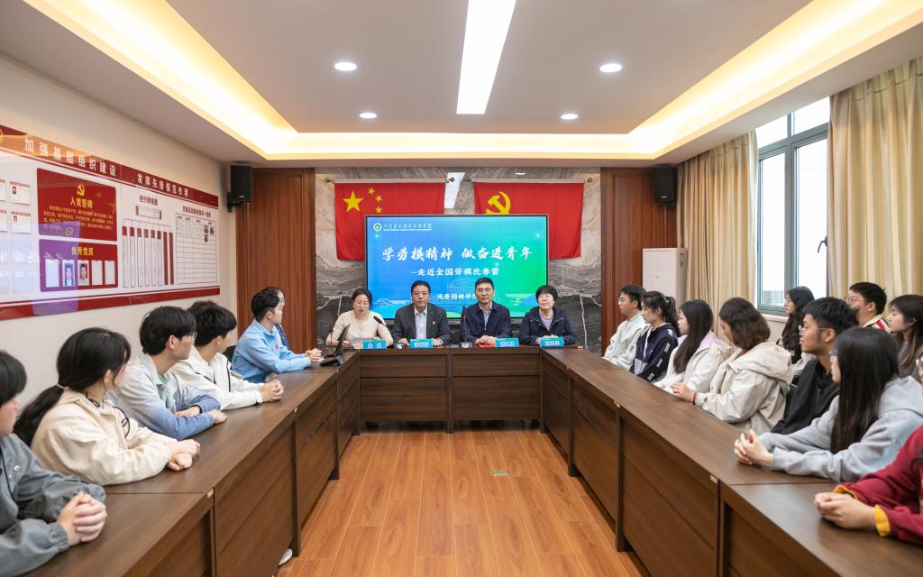 师生走进沈春雷工作室,开展“学劳模精神 做奋进青年——走近全国劳模沈春雷”主题活动。