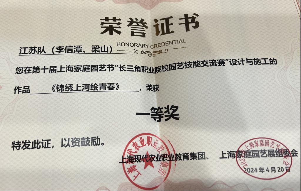 4月19日-21日,由上海市绿化委员会、上海现代农业职教集团主办,上海市花卉产业体系 、上海上房园艺有限公司联合承办的第十届上海家庭园艺节“长三角职业院校园艺技能交流赛”在上房园艺・梦花源成功落下帷幕,我院园林专业师生的参赛作品《锦绣上河绘青春》荣获本次大赛一等奖。本次比赛历时3天,有来自安徽(世赛国家队)、浙江、上海、江苏的11个长三角地区园林相关专业职业院校参加。