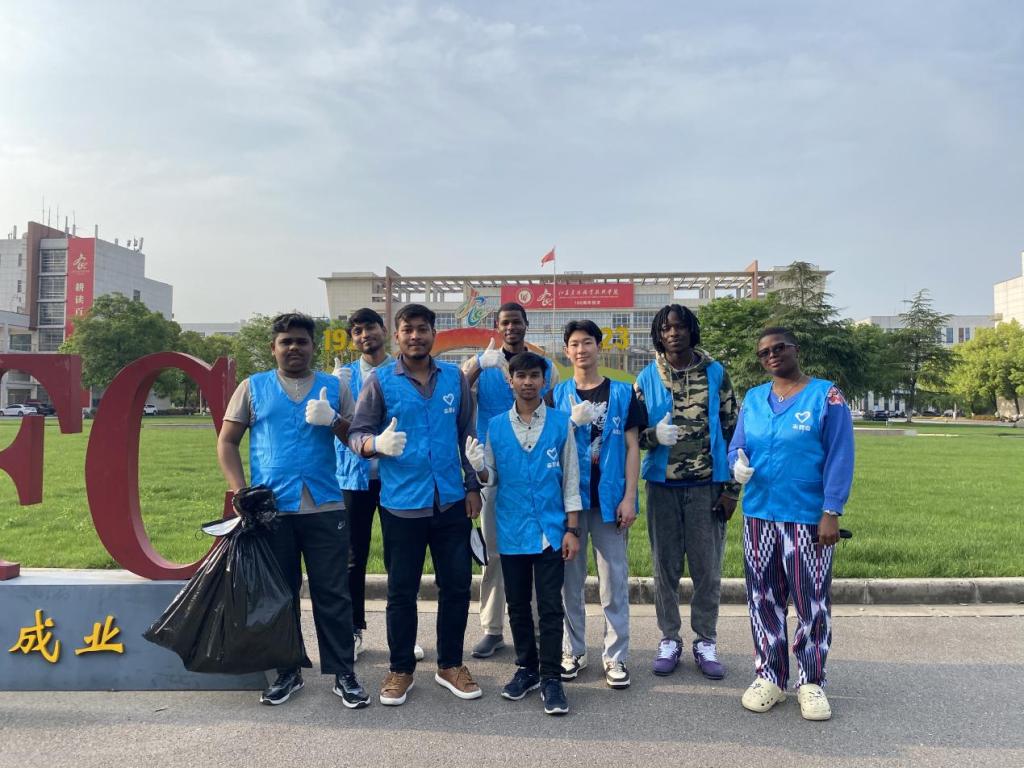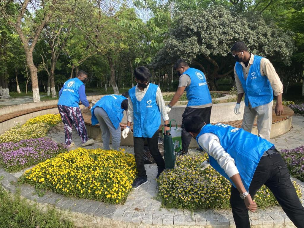 组织来自“一带一路”国家的留学生开展打造美丽校园的环保活动。