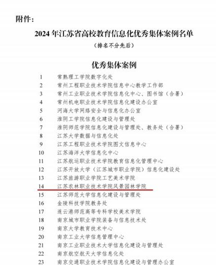 申报的“应用引领 数智赋能 “信息化”助力园林技术专业人才培养出成效”在众多案例中脱颖而出,成功入选2024年江苏省高校教育信息化优秀集体案例。