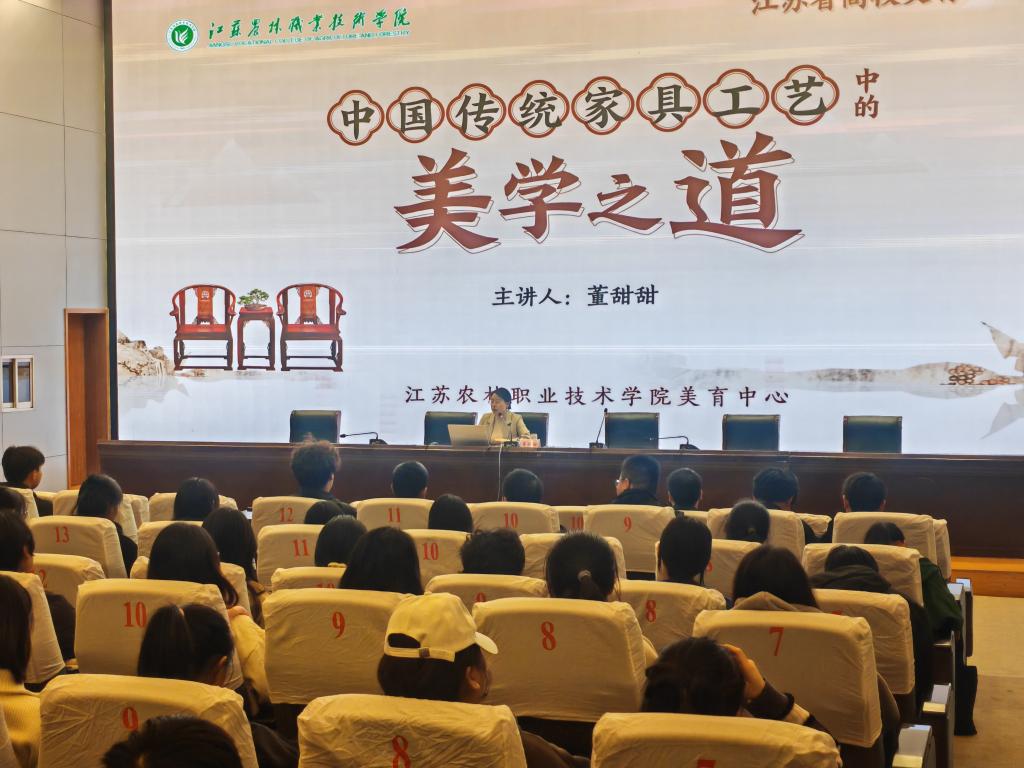 为贯彻落实《教育部关于全面实施学校美育浸润行动的通知》,面向全体学生开展美育普及教育,进一步提升学生的审美能力和人文素养,按照省教育厅的相关工作要求,10月24日下午,团委邀请了东南大学副教授、硕士生导师董甜甜在图书馆报告厅以题为“中国传统家具工艺中的美学之道”的专题美育讲座。300多名学生参加。