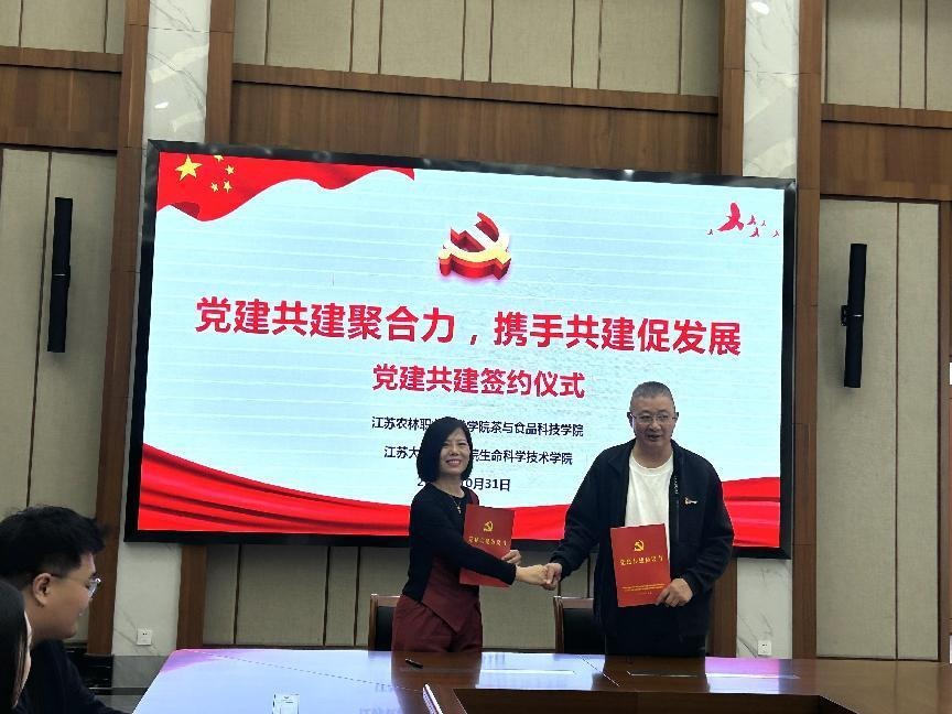 会上,双方共同签署了党建共建协议,双方将以加强基层党组织建设为目标,强化党建业务融合,围绕教学科研、师资培养、学生管理等加强合作,推动双方各项工作的高质量发展。会议结束后,柳春华参观了江苏农博园。