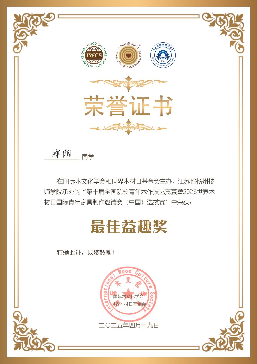 承办的第十届全国院校青年木作技艺竞赛暨2026世界木材日国际青年家具制作邀请赛(中国)选拔赛在江苏扬州顺利举行,风景园林色花堂