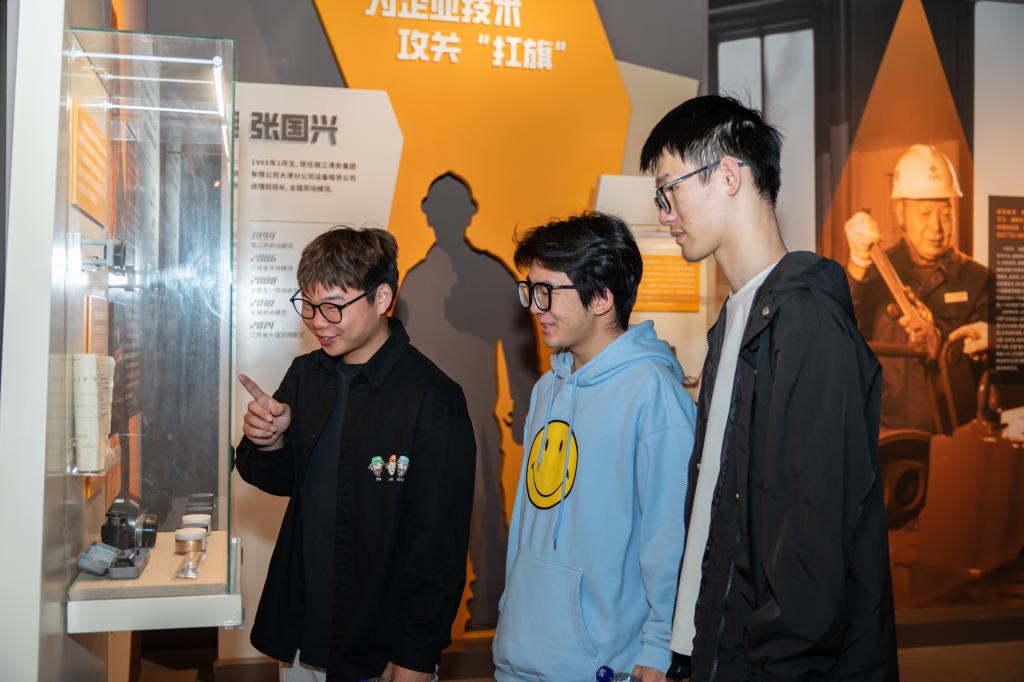 活动伊始,在讲解员的引导下,同学们参观了劳模工匠馆。馆内,先进的AI人脸融合技术、环抱式沉浸体验剧场让同学们仿佛穿越时空,与劳模们“近距离”对话,真切感受他们的奋斗历程和卓越精神。