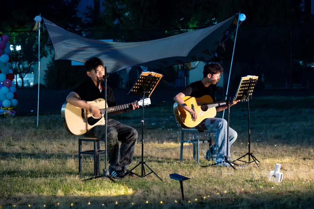 在星空与草甸的映衬下,青年学子用音乐诠释热爱,以艺术点亮青春,为校园文化建设注入蓬勃生命力。活动结束后,学生们纷纷表示,此次草坪音乐节不仅为紧张的学习生活增添了艺术色彩,更激发了自身对音乐创作的热情与追求。