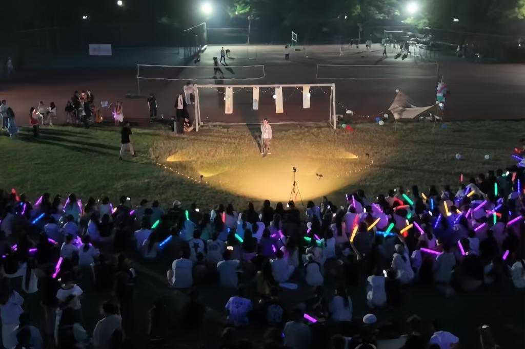 5月14日晚,茅山校区操场化身青春舞台,由校区团委主办、蕴美色花堂社团承办的“星光草甸 音梦漫游”草坪音乐会璀璨上演。500 余名师生共聚星空下,在音符与光影交织中,畅享一场沉浸式美育盛宴。