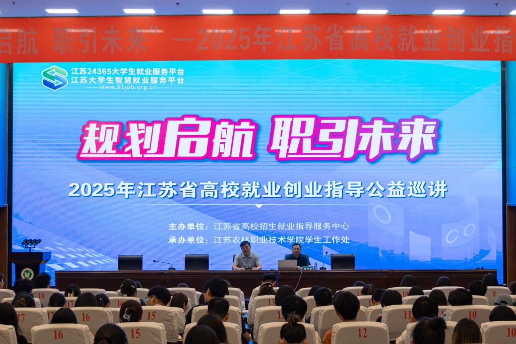 5月14日下午,“规划启航 职引未来”——2025年江苏省高校就业创业指导公益巡讲活动在我校图书馆报告厅举行。本次活动主讲人为中国国际大学生创新大赛和全国大学生职业生涯规划大赛专家库成员、江苏省就业创业培训专项导师、BCC全球生涯教练和GCDF职业生涯规划师,南京理工大学学生工作处副处长周双喜。讲座主题为“以赛促教,以赛促学,以赛促就——高校大学生职业生涯规划大赛的使命任务”。