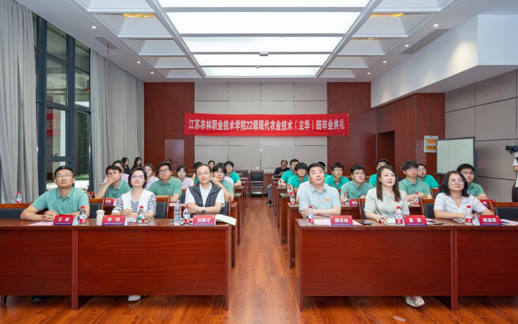 常务副院长李玮、作物健康事业部江苏子公司副总经理王帅以及22级、23级现代农业技术(立华)班全体学生齐聚一堂,共同见证首届校企合作定制班13名毕业生的成长时刻。