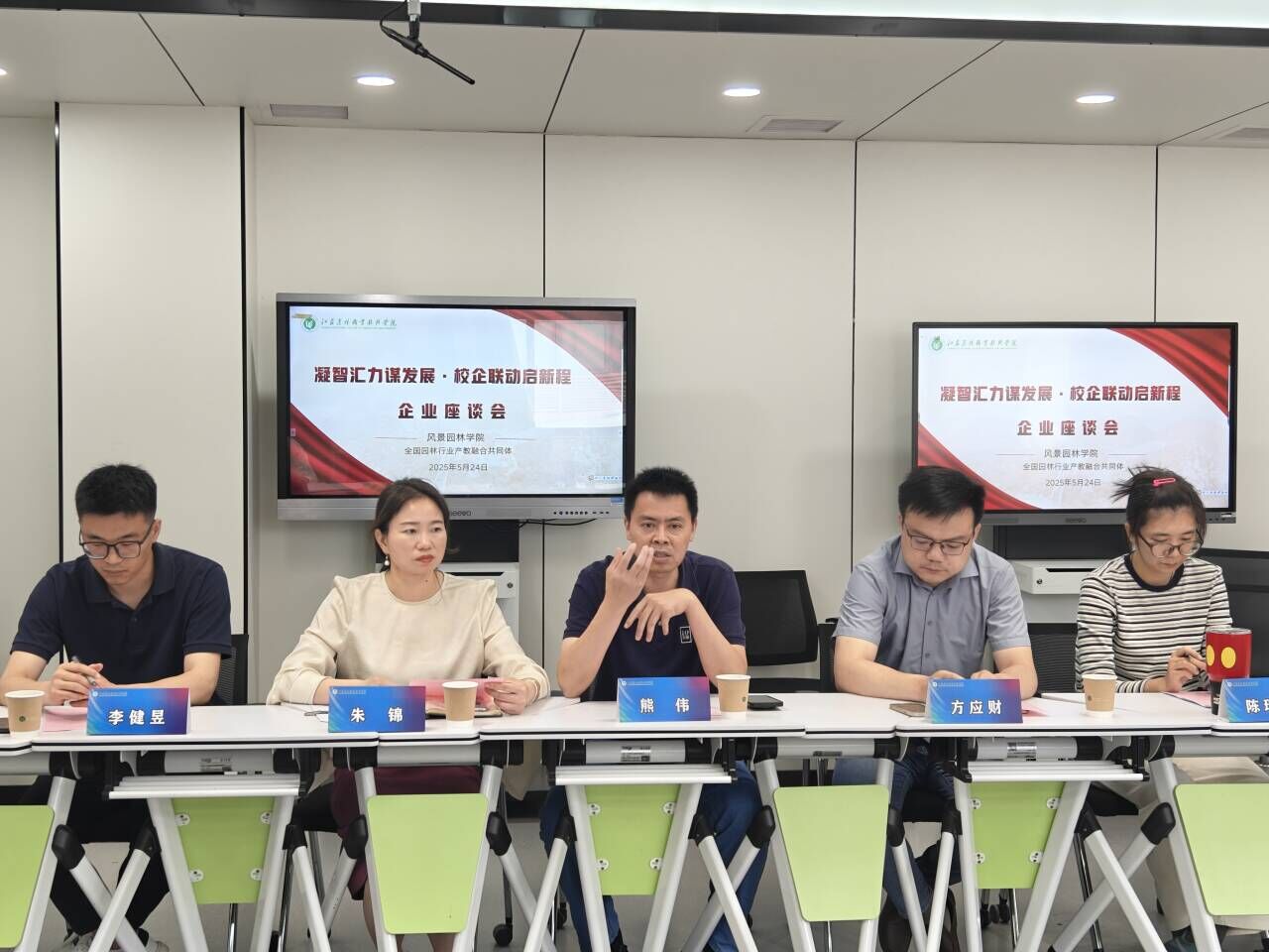 在研发楼智慧教室举办“凝智汇力谋发展・校企联动启新程”企业座谈会。南京我乐家居、南京逐鹿景观工程有限公司、金桥房地产等10余家企业代表参与座谈会,共商人才培养与合作新路径。