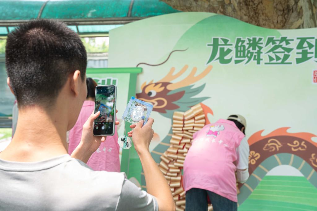 活动现场,师生们用创意重新诠释端午习俗。在“龙鳞千愿·共绘安康”签到区,彩色贴纸拼贴成巨型龙舟,每一片“龙鳞”写满祝福;在“心灵图腾·吧唧工坊”徽章区,参与者将烦恼或心愿写在纸上,制作成随身携带的治愈符号;在“彩缕系心·掌上传情”手链区,五彩绳手链被改造成新潮手机链,一代人有一代人的祈福仪式感;在“潮佩端阳·创意随行”佩带区,“痛包”与端午佩带习俗结合,让端午护佑化作时尚宣言。传统与潮流的碰撞,让文化传承变得“触手可及”。有学生感叹:“原来驱邪避毒的习俗可以这么‘潮’,既解压又有意义!”