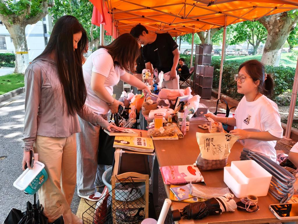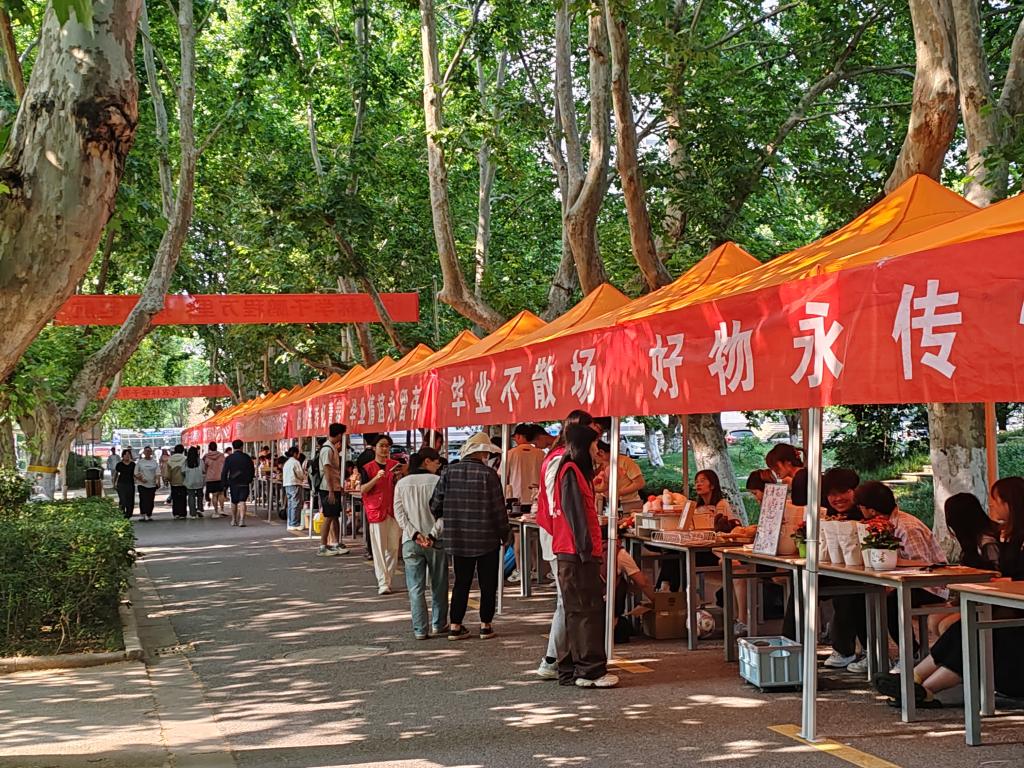 五月的梧桐大道绿荫如盖,第二届校园跳蚤市场热闹开市。百米道路两侧,几十顶摊位有序排开,构成青春风景线。大三学子化身“小摊主”,将写满笔记的专业课本、叠放整齐的冬衣、陪伴熬夜的咖啡杯等物件摆上摊位。“附赠思维导图!”“半价出,续航超给力!”热情的吆喝声此起彼伏;创意招牌搭配手绘图案吸睛十足;梧桐叶沙沙作响,询价声、欢笑声交织,让校园化作活力满满的青春集市。