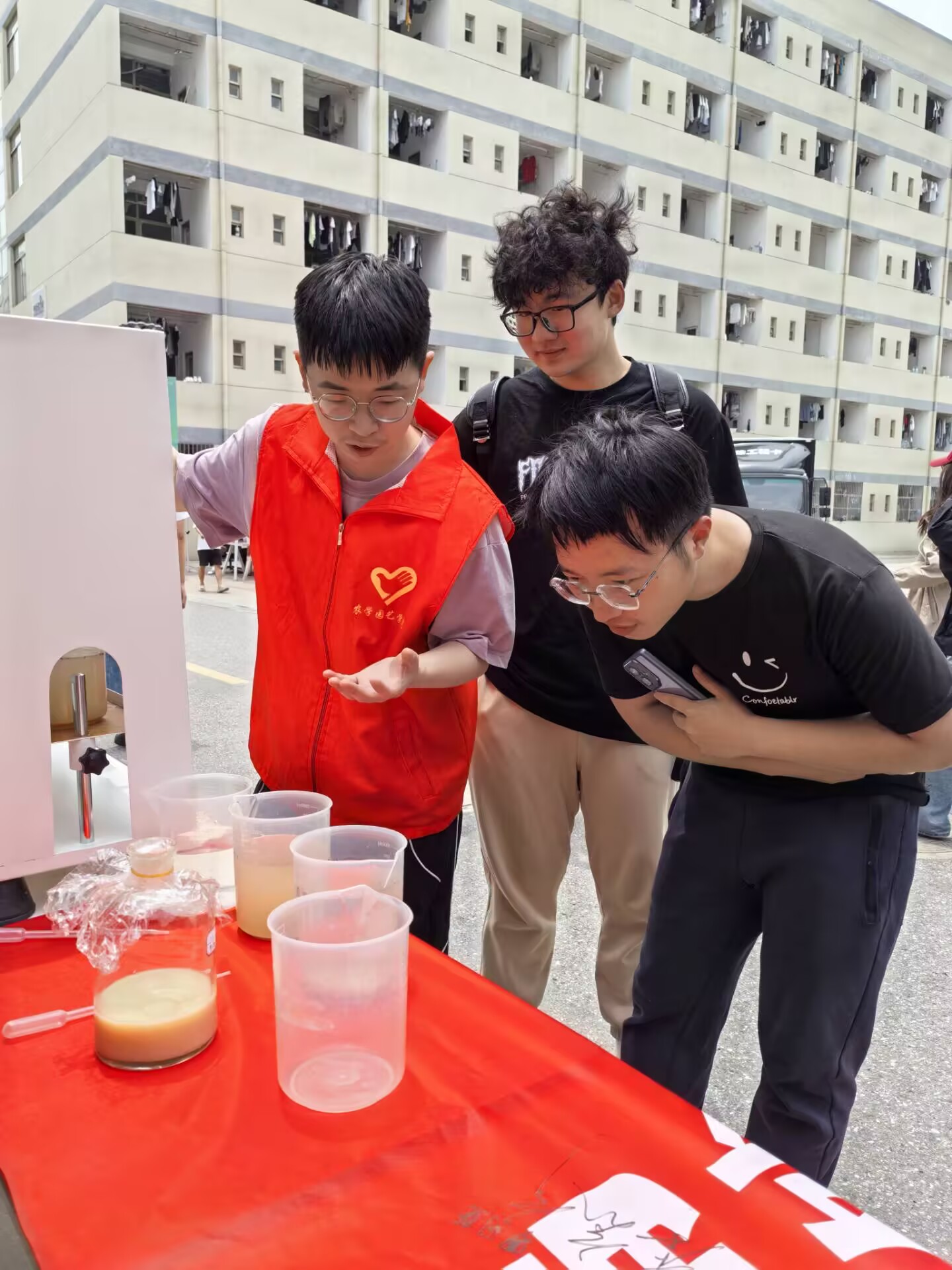 的志愿者们还进行了生动的演示,他们向浑浊水中投入絮凝剂,直观展示了絮凝沉淀净化技术,并详细讲解后续砂滤和氯消毒等复杂工艺,让学生们深入了解自来水生产过程的科学严谨性,进一步树立起节水、爱水、惜水的理念。
