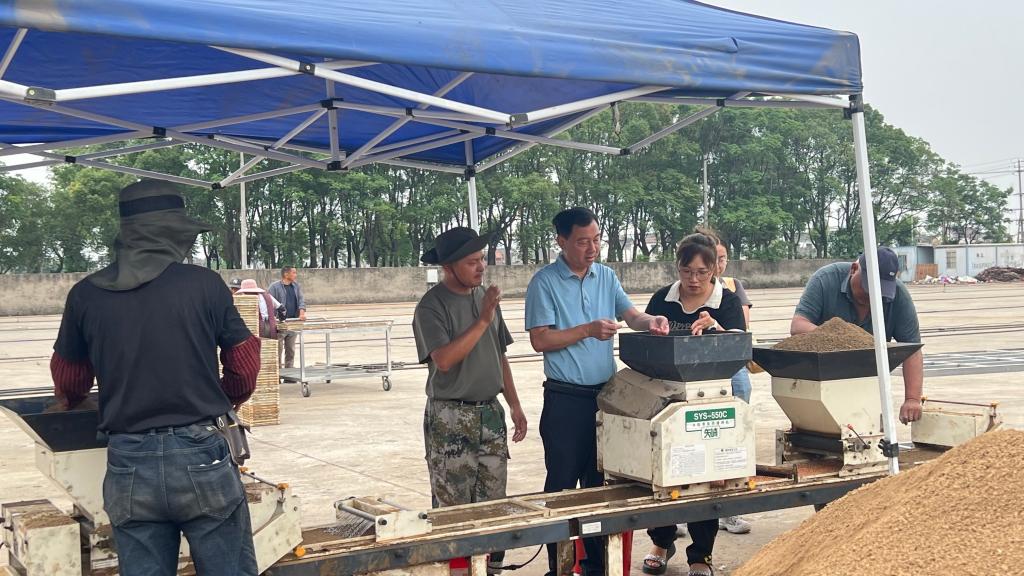 在丹阳市东皇村现代化育秧基地,专家组深入生产一线,实地考察了工厂化育秧设施运行情况。针对育秧播种密度、基质配比、肥料施用、药剂选择及播期安排等关键环节,杨宝林教授结合当地气候特征与水稻品种特性,为农户开展了现场技术示范与讲解。他指出:“工厂化育秧是水稻高产高效生产的基础环节,必须严格把控浸种消毒、温湿度调控、水分管理、病害预防等核心技术要点,确保培育出根系发达、茎秆粗壮的优质秧苗,为后续大田生产奠定坚实基础。”