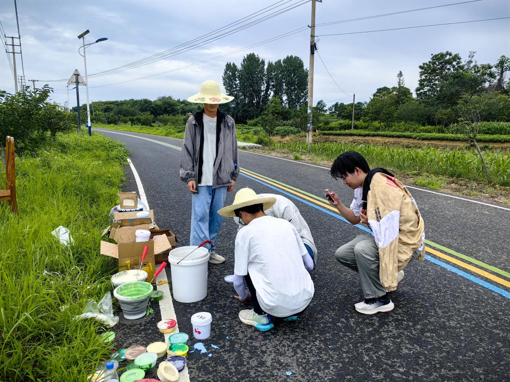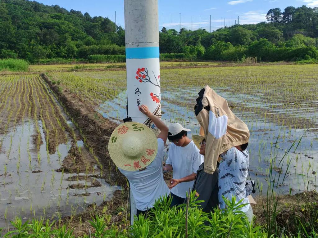 “寻乡绘意”暑期社会实践团应江苏省镇江市句容市龙山湖村村委会邀请,在该村开展了一项独具特色的墙绘实践活动。在为期三天的酷暑中,由1名指导老师和7名学生组成的实践团克服困难,在长达2.5公里的乡村道路单侧24根电线杆上,成功绘制了以中国传统二十四节气为主题的系列墙绘,为乡村增添了一道亮丽的文化风景线。