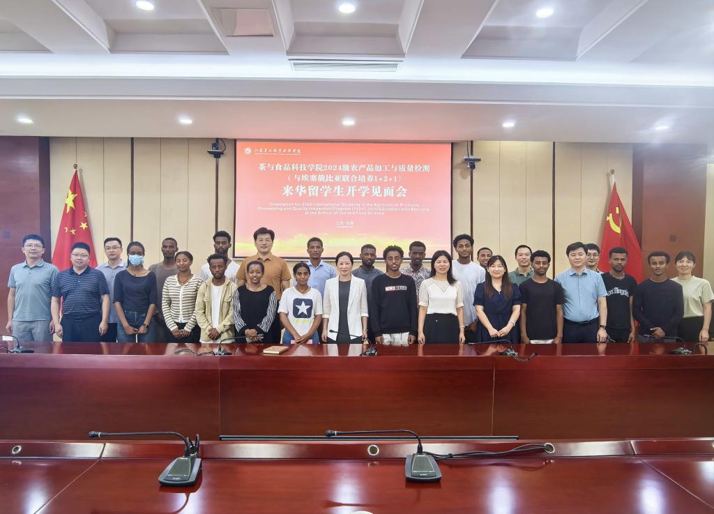 9月15日下午,2024级农产品加工与质量检测专业(与埃塞俄比亚联合培养1+2+1)来华留学生开学见面会在综合楼九楼会议室举行,色花堂