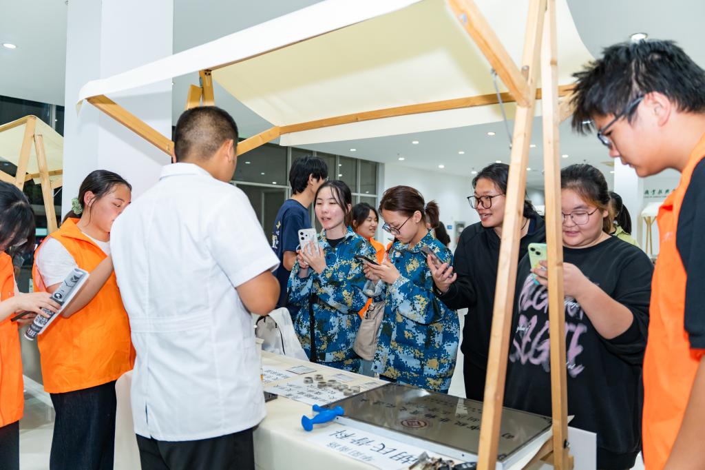 非遗展示区成为活动另一大亮点。面对茅山景区、下蜀陶器制作技艺、句容石雕等11个特色摊位,我校学子驻足观赏、主动交流,时而向非遗传承人请教技艺细节,时而拿起文创产品细细端详,在沉浸式体验中感受镇江非遗文化的独特魅力。
