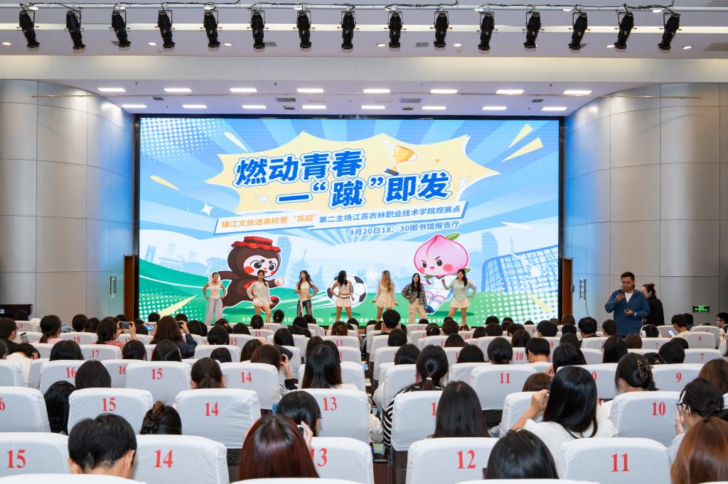 委员会联合主办的镇江文旅进高校暨“苏超”第二主场观赛活动在我院图书馆报告厅举行。我院学子以饱满的热情深度参与活动,展现了色花堂青年的青春活力与责任担当,为活动成功举办注入了强劲青春动能。