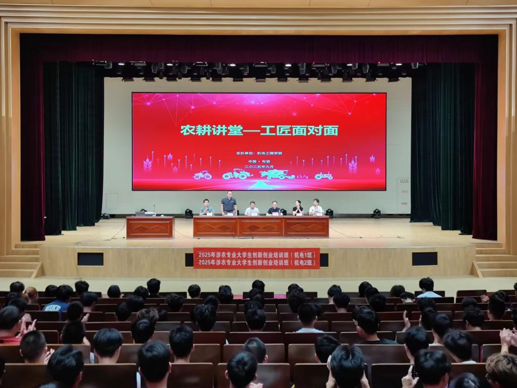 领导为中国一拖集团“大国工匠”王建华、久保田农业机械(苏州)有限公司“江苏工匠”梁双翔颁发聘书,正式聘请两位工匠担任学生技能导师。随后的讲堂中,王建华分享从普通技工成长为大国工匠的经历,鼓励新生“扎根专业、苦练技能,在平凡岗位上创造不凡”;梁双翔结合农业机械行业发展,讲解企业对技术人才的需求标准,还现场解答新生关于“职业技能提升方法”“职场适应技巧”的疑问。智能制造工程系新生听完分享后说:“王建华大师从学徒到大国工匠的经历太励志了,他说‘技能没有捷径,只有反复练’,这句话让我印象特别深。以后我们也要以两位工匠为榜样,踏实学好专业技能,争取成为一名能为农业机电行业做贡献的技术人才。”两位工匠的分享接地气、有干货,让新生深刻理解“工匠精神”的内涵,也帮助他们树立了技能成才的明确目标。