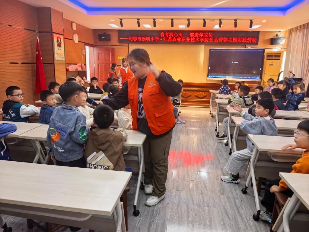 师生走进崇明小学,开展“食育润心田,健康伴成长”食品营养宣教活动,推动校地资源整合,助力青少年健康成长。
