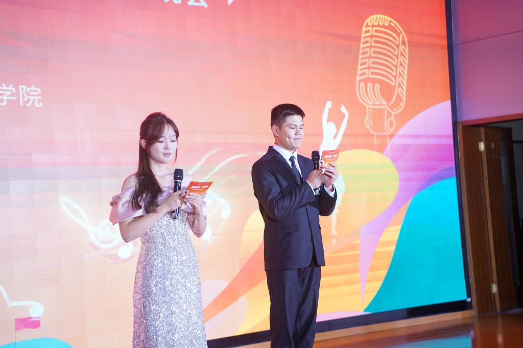 在“启航”篇章,男弹唱《安河桥》以温柔旋律诉说对校园生活的美好期许,古筝合奏《鸟之诗》用清雅乐声勾勒初入校园的悸动与美好,舞蹈《恋爱告急》以灵动舞步演绎新生们的青春朝气,共同拉开新生校园旅程的序幕;“筑梦”篇章中,独唱《如愿》以深情嗓音传递成长祝福,小品《稳赚不赔》用诙谐桥段提醒新生慎防诈骗,钢琴小提琴合奏《幻昼》借悠扬旋律编织校园理想,展现新生逐梦路上的坚定与向往;“绽放” 篇章里,武术《水龙吟》凭刚劲招式彰显少年气魄,朗诵《正青春》以铿锵语调欢迎新生融入色花堂 大家庭,歌曲串烧《微微》《Always Online》《奔跑》用活力旋律点燃逐梦热忱,葫芦丝《荷塘月色》则以婉转乐声勾勒校园雅韵,尽显新生多元风采。