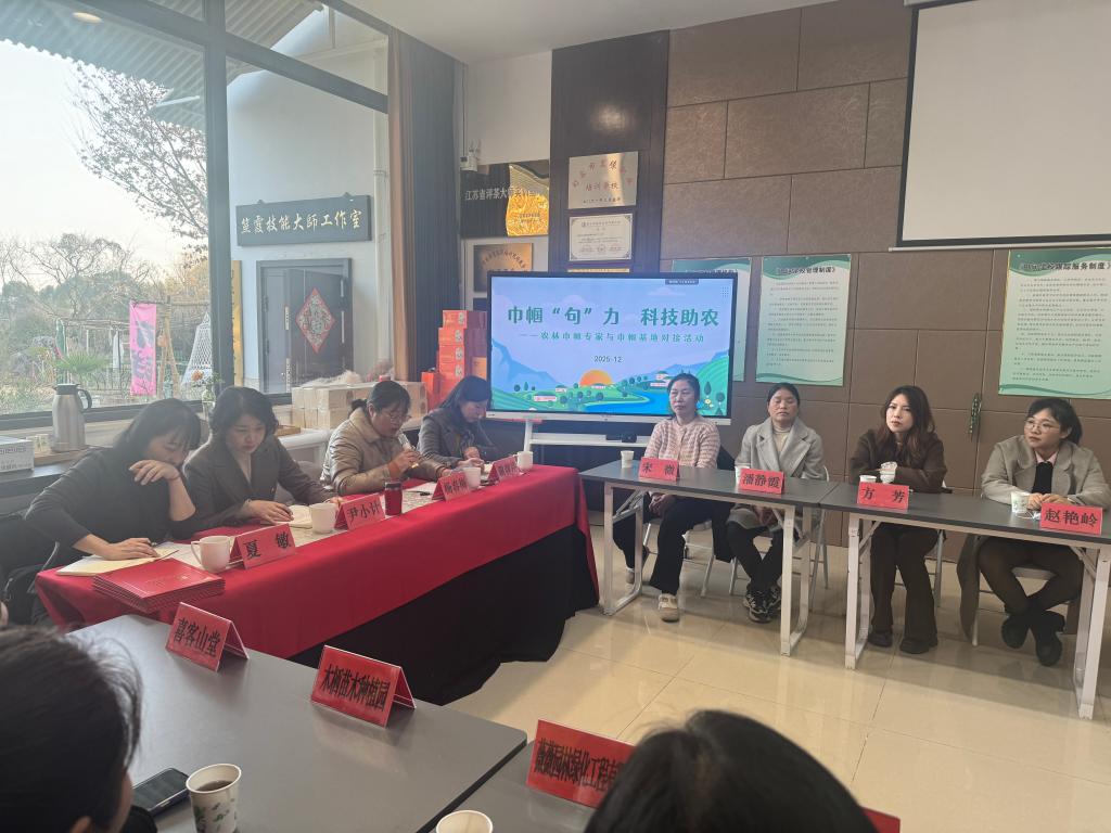 妇联组织女科技专家团队,赴句容市巾帼农业基地开展对接服务活动。谢春芹、宋微等涵盖种植、养殖、园林、营销等多领域的6位女科技工作者参与,句容市妇联负责人、各乡镇妇联主席及多家巾帼基地代表共同参加。