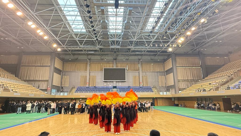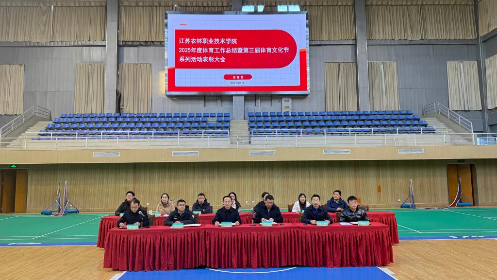 学子带来的扇子舞《象王行》精彩亮相,展现了青春活力。体育部主任汪建春作年度工作总结,全面回顾了2025年体育工作成效:男子篮球队蝉联江苏省大学生篮球联赛一等奖并晋级全国赛,学生体质健康监测合格率达95.9%,校内体育文化节涵盖8大项目,吸引3000余人次参与,教职工体育活动也蓬勃开展。