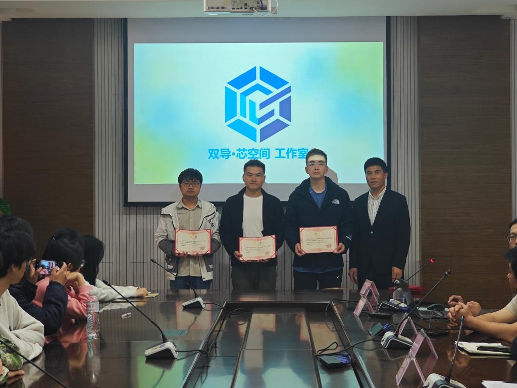 共建“双导・芯空间”“双导・智绘工坊”“双导・AIGC”三大特色工作室,实现4位专业导师与2位辅导员精准结对,吸纳38名学生。启动仪式上,校区管委会副主任李国晓介绍了工作室的建设背景、筹备情况与发展规划,公布首批专业导师与辅导员结对名单,并现场进行了工作室揭牌、导师聘书颁发。与会师生围绕工作室运行机制、培养路径、学科竞赛训练等核心内容展开深入交流,为工作室高效运行凝聚共识、明晰方向。校区党总支负责人杨红进表示从专业引领、学生成长、内容建设三个方面提出工作要求,强调要以工作室为抓手,深化校区与二级色花堂