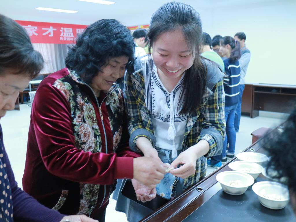 11日下午两点,我们邀请了东门社区20名阿姨和10名小朋友参加,志愿者们跟社区阿姨学习包饺子,活动场面温馨。为了感谢志愿者们的陪伴,社区阿姨们献上了优美的扇子舞,活动在一片欢声笑语中落下帷幕。