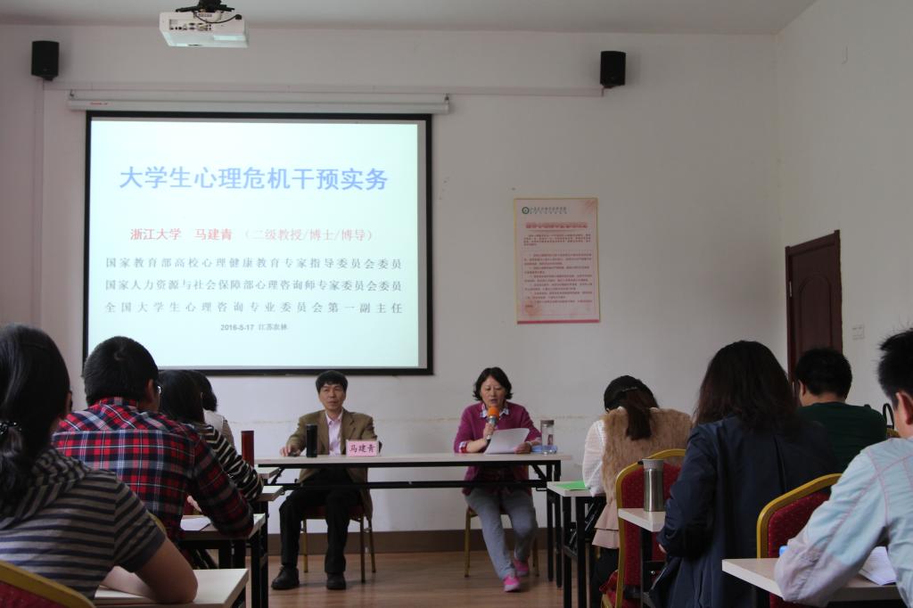 、镇江市高等专科学校以及我院共37名老师参加了此次培训。培训特邀全国知名心理专家、浙江大学教授马建青老师主讲。