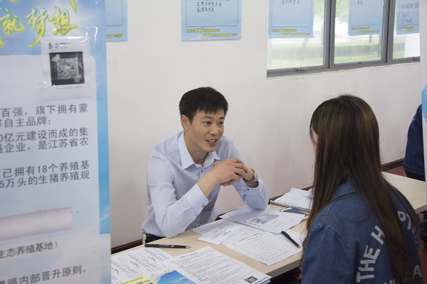 参加此次校园招聘会的有包括中粮肉食(江苏)有限公司、嘉吉动物蛋白(安徽)有限公司、深圳市瑞鹏宠物医院有限公司等在内的119家用人单位,其中不乏世界500强、中国百强企业、行业龙头企业及畜牧兽医系优秀创业校友,提供岗位1928多个,岗位学生比超过9:1,充分满足了系部毕业生的就业需要。