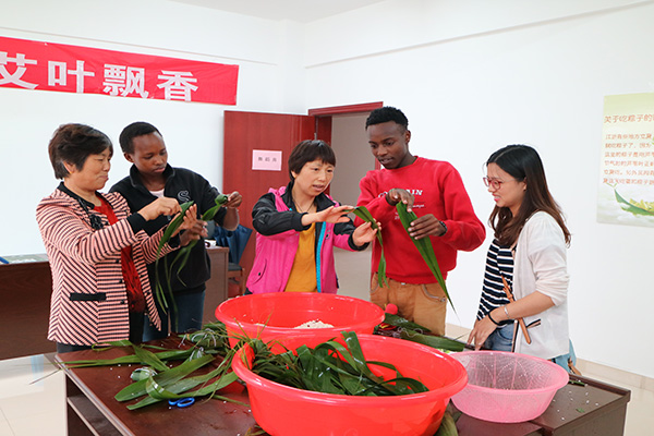 风景园林系以“端午记忆·艾叶飘香”为活动主题,活动现场,社区阿姨热情地向志愿者们传授本地粽子的制作方法,来自肯尼亚的留学生Leah和Kim也兴趣盎然的加入到学习队伍中。大家洗竹叶、调馅料,粽叶、红豆、蜜枣、糯米等在手中上下舞动,大家包出的三角粽、四角粽、塔形粽、牛角粽等有着不同地域特色的形态各异的粽子让现场笑声阵阵。活动最后,志愿者纷纷将这些粽子送到了社区困难户、空巢老人和留守儿童等群体的手中,和他们一起提前过端午。