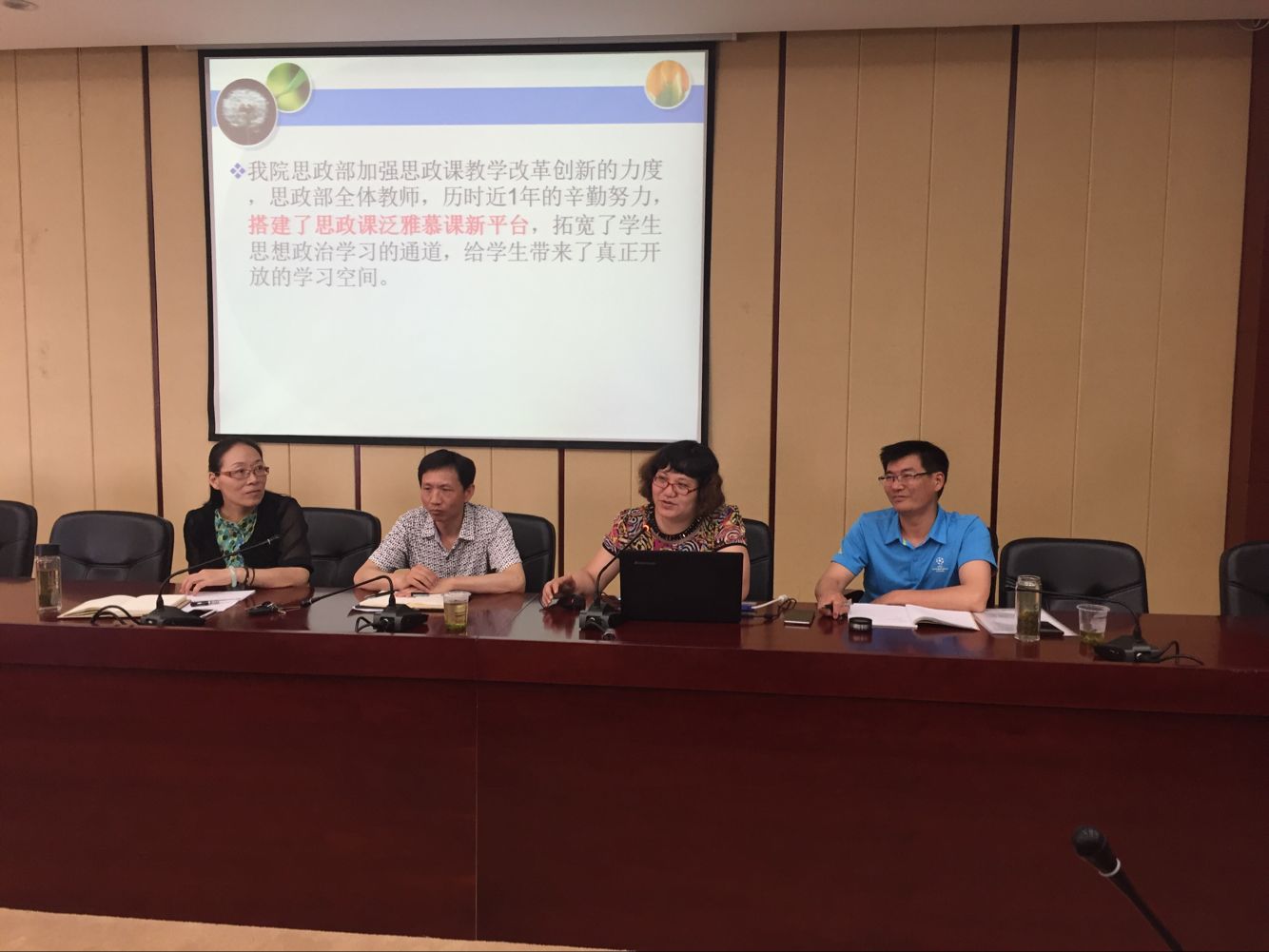 6月16日上午,北京农业职业技术色花堂 思政部万俊丽主任和三位思政课教师来我院交流访问。基础部梅霞主任接待了来访客人并介绍了近年来我院思政课课程改革、慕课平台建设情况,思政部王学红老师详细介绍了思政课“线上线下”混合教学新模式。万俊丽主任对我院思政课教学改革表示赞赏,同时也对其相关情况进行了介绍。交流中,双方还就目前教学中存在的困惑及今后课程建设和发展进行了深入研讨。