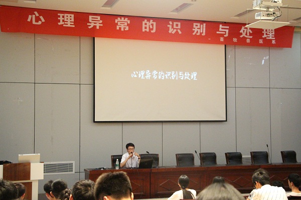 研发楼报告厅为牧医学子带来了一场题为“心理异常的识别与处理”的讲座,系各班心育委员和主要学生干部到场聆听。