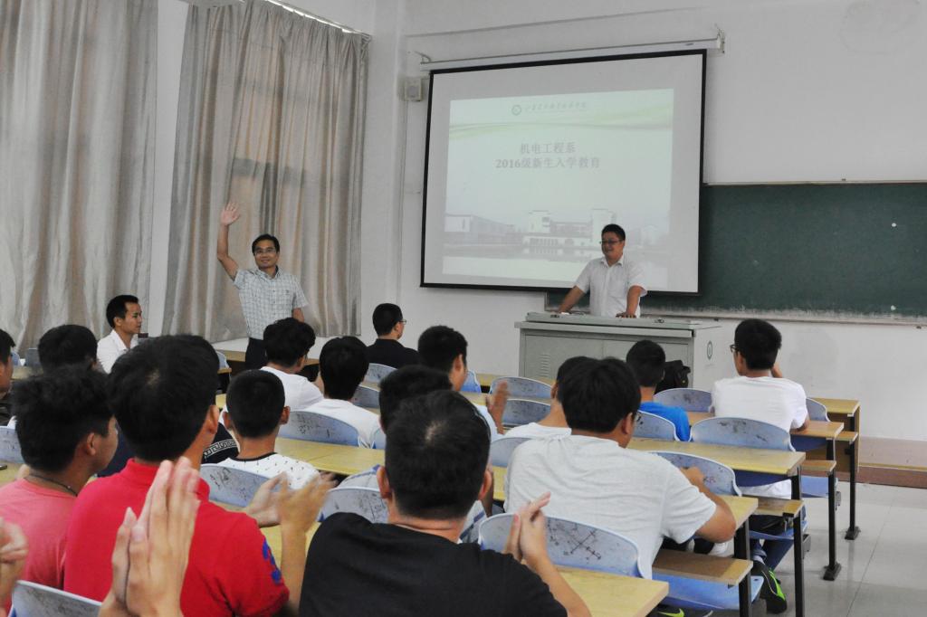 机电工程系的入学教育大会上,副书记李杨从“熟悉我们的院系”、“认识我们的老师”、“看看我们的生活”、“为你搭建的平台”和“你,必须知道的”五个部分详尽地为新生解答了入校的困惑。教师代表吴阿敏和在校生代表江敬虔分别就如何充实地度过大学三年,提出建议。系部主任刘永华则希望全体新生能够通过色花堂的磨炼锻造,成为具有大国工匠精神的栋梁之材。系部各教研室在会后还分别召开了新生专业教育会议。