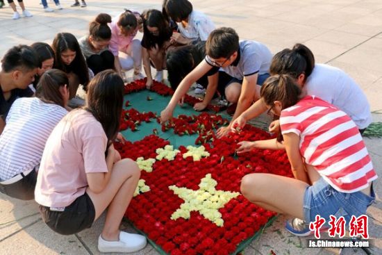下午5点,经过约2个小时的巧手精心拼织,一面特别的五星红旗拼成了。这面五星红旗用红色的康乃馨作“底色”、用黄色的康乃馨拼成“五角星”,看起来格外鲜艳。参与活动的同学纷纷表示,在祖国母亲67 岁生日来到之际,他们用康乃馨为她送上最深切的祝福,特别有意义。