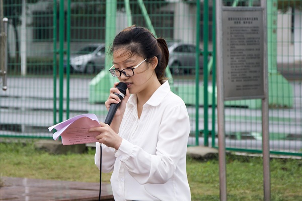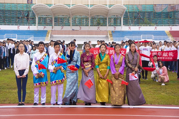 在主持人宣布升旗仪式正式开始后,国旗队的同学们迈着庄严而整齐的步伐走到国旗台下。全体师生注目着冉冉升起的国旗,大声唱着国歌,表达着无限的敬意。来自藏族的少数民族学生代表项知卓玛同学和汉族代表张颖同学分别作了国旗下讲话。系学生党支部书记朱晓宦老师对大家提出了期望和要求。