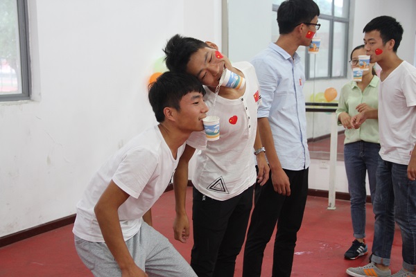 活动在“上刀山下水渠”中拉开了序幕。指压板上的奔跑和用嘴巴搬运装满水的杯子考验了同学们的坚韧与耐力,锻炼了同学们的体力;“气球炸炸炸”的隐藏任务中,大家组队拼出五角星、祖国等字样并深情的颂唱了国歌;最后的“世界辣么大,我想找到你”最为有趣,“金、秋、十、月、举、国、同、庆”的卡纸分别被藏入体育馆内的各个角落,等待着被寻觅。,活动中,欢声笑语阵阵响起,宛如同学们内心对祖国的热爱和对班级同学的关心一般。