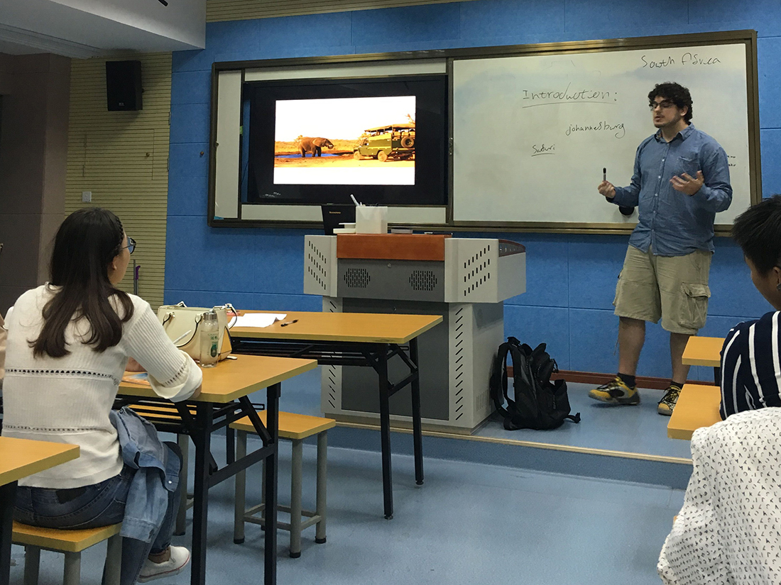 该课程由第四批乐助(Lattitude)项目志愿者南非的迈克尔(Michael)为学员授课。课堂上,迈克尔(Michael)从介绍自己的家乡开始,美丽的南非给学员们留下了深刻的印象,猜人名游戏、英语绕口令等环节则让学员们大胆用英语表述,课堂气氛活跃,学员们纷纷表示此课程对大家提高口语能力有很大帮助,为以后的海外培训奠定基础。