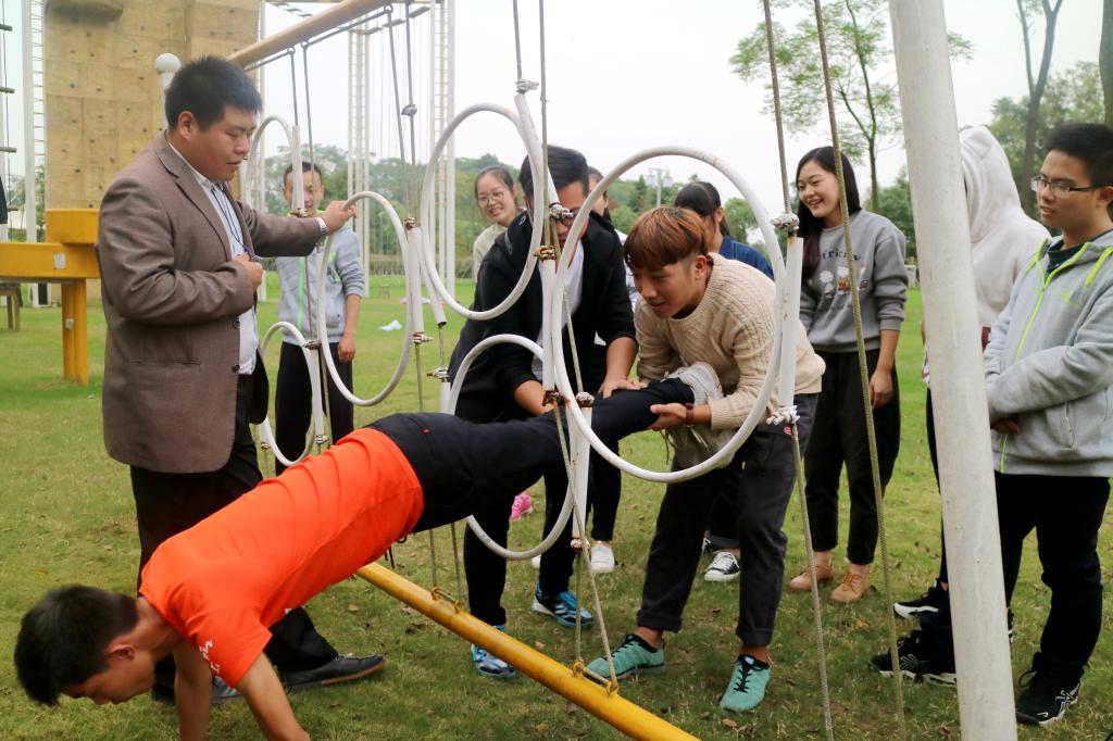 心理素质拓展活动中,“握手123”、“老虎、人、枪”、“支援队长”及“激情60秒”等丰富多彩的游戏,让心育干部们明白了在团队合作中沟通和为他人服务的心态是成功的必备条件。