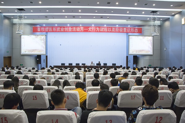 为了让同学们更多的认识驯犬,更深入地了解驯犬,畜牧兽医系举办了“驯犬我先行”就业创业知识讲座。