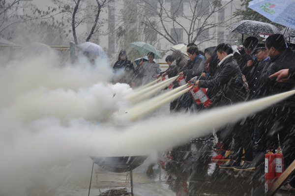 张老师通过一个个典型偷盗、诈骗案例和火灾事故,运用图片、视频资料,深入浅出地讲解了校园安全工作的重要性;全面介绍了日常生活中应注意的安全细节以及火灾中的自救、逃生知识;并就灭火器、防烟面具等消防用具的使用进行了细致具体的现场演练。