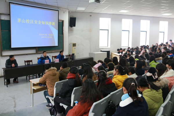 安保处张义河老师于茅山校区报告厅开展了安全知识讲座,校区600余名同学踊跃参加。