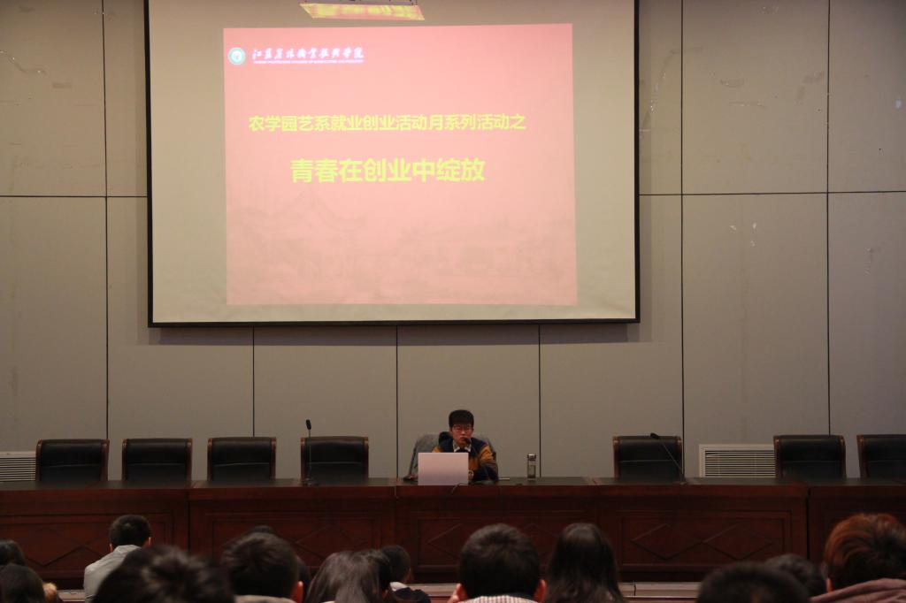 11月30日,农学园艺系在研发楼报告厅举办了学长交流活动之“青春在创业中绽放”专题讲座。主讲人为农学园艺系2016届毕业生华梦丽,全院100多名学生参加了讲座。
