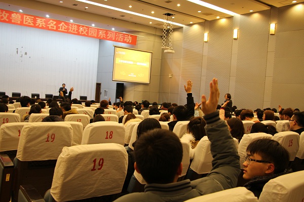 图书馆报告厅,畜牧兽医系特邀嘉宾——大北农集团(淮安区)人力资源总监杨勇以“大学生职业规划—赢在赶路线上”为主题的讲座拉开了“携手名企、成功就业”活动的序幕。